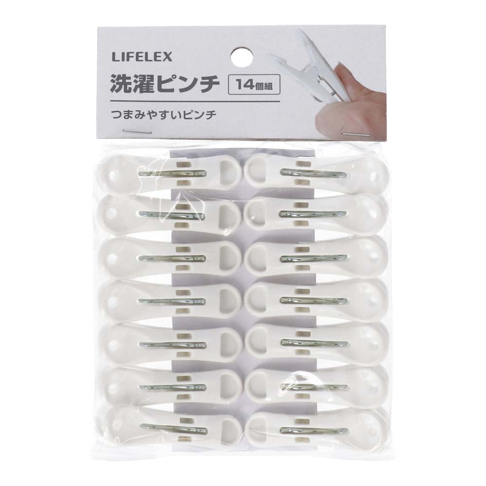【特長】●つまみやすいピンチ●14個組【仕様】●材質:本体/ポリプロピレン バネ/鋼線●サイズ(約):幅5.8×奥行1.7×高さ3.3cm【使用上のご注意】※本来の用途以外に使用しないでください。※高層マンションの外での使用は止めてください。※長時間の直射日光などにより劣化する恐れがあります。※火気や熱風のあたる場所では使用しないでください。※強風時には使用しないでください。【注意事項】※火器や熱源、洗濯乾燥機などのそばに置くと、軟化して変形することがあります。