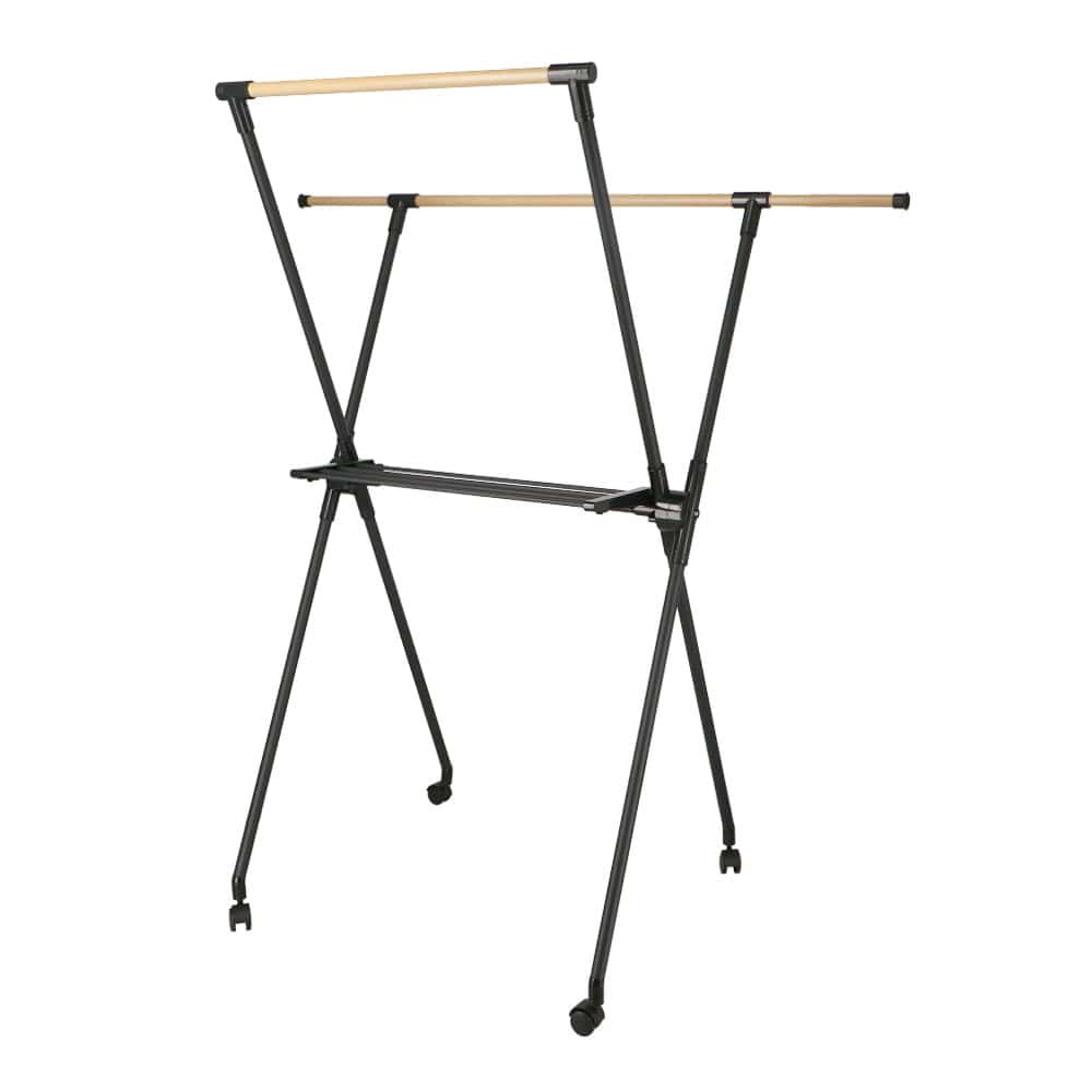 コーナンオリジナル LIFELEX 木目調 X型室内物干し キャスター付 ブラック WH21−8949