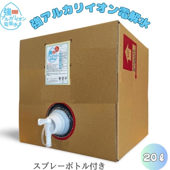 プロの現場でも採用!しっかり洗浄、やさしい水ベースのクリーナー 強アルカリイオン電解水 pH12.5 キッチンの頑固な油汚れや、生活の気になるニオイも、これ1本でスッキリ! ◆ 強アルカリイオン電解水とは? 水を電気分解して生成された、高アルカリ性(pH12.5)の洗浄水です。 界面活性剤・アルコール・化学物質は不使用。 水を電気分解して作られた洗浄水で、清掃のプロや食品加工現場でも選ばれています。 毎日の掃除を、もっと安心・もっと簡単に。 ◆ 3つの特長 01. しつこい汚れもスッキリ 油汚れ・タンパク質汚れをしっかり浮かせて洗浄。 換気扇、コンロ、レンジの焦げ付きもスッキリ。 ※たんぱく質汚れを除去することで、清潔な環境維持に役立ちます。 02. 清掃しながらニオイ対策 ニオイの元を拭き取って、快適空間に。 泡立たないから二度拭き不要、時短掃除にも◎ 03. やさしい使い心地 界面活性剤・アルコール・化学物質を含まず、水から作られているので安心。 お子様やペットのいるご家庭でもお使いいただけます。 界面活性剤不使用・化学物質不使用・アルコール不使用 ◆ これ1本で家中どこでも使える! pH12.5の高濃度洗浄水で、キッチン・リビング・浴室・車内など幅広く活躍! 汚れに応じて水で薄めても使えます。 ◆ 主な使用例 冷蔵庫、調理家電、調理器具、床、壁、テーブル、車内のお掃除に。 おもちゃ、ペット用品、布製品のニオイ対策にもおすすめ! ※電化製品は電源を切ってからご使用ください。 ※素材によっては変色の恐れがあるため、目立たない場所でお試しください。 ◆ ご使用方法 スタンドパウチやバックインボックスから、スプレーボトルに詰め替えて使用してください。 コック付きで詰め替えも簡単。 業務用からご家庭まで、幅広いニーズに対応します。プロの現場でも採用されている強アルカリイオン電解水は、頑固な油汚れや菌、臭いを強力に分解・洗浄します。 この製品は洗剤を必要とせず、2度拭きも不要なため、家事の時間を大幅に短縮できます。 界面活性剤を使用していないため、無刺激で無色無臭。赤ちゃんやペットがいる家庭でも安心して使用できます。 また、環境汚染ゼロを実現しており、家庭用から業務用まで幅広く対応可能な多用途万能クリーナーです。 20Lの大容量で、コック付きのため使いやすさも抜群です。