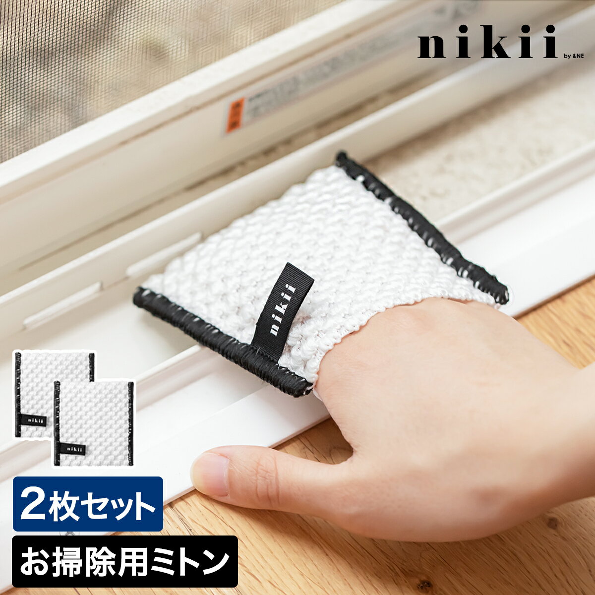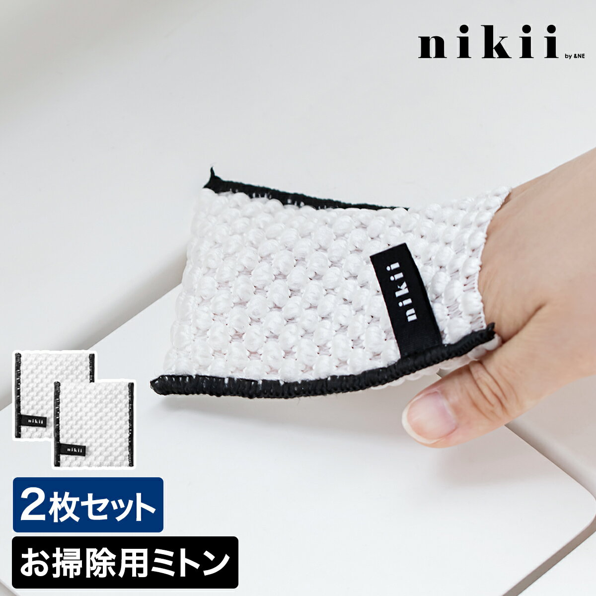 掃除ミトン ミニサイズ 2枚セット クロス 水垢 クリーナー 洗面台洗い サッシ キッチン 掃除 ホコリ取り 隙間 水拭き 電子レンジ 掃除グローブ ポリエステル 新生活 モノトーン モダン シンプル &NE アンドエヌイー ニキ NMM-311[ nikii お掃除ミトン mini 2P ]