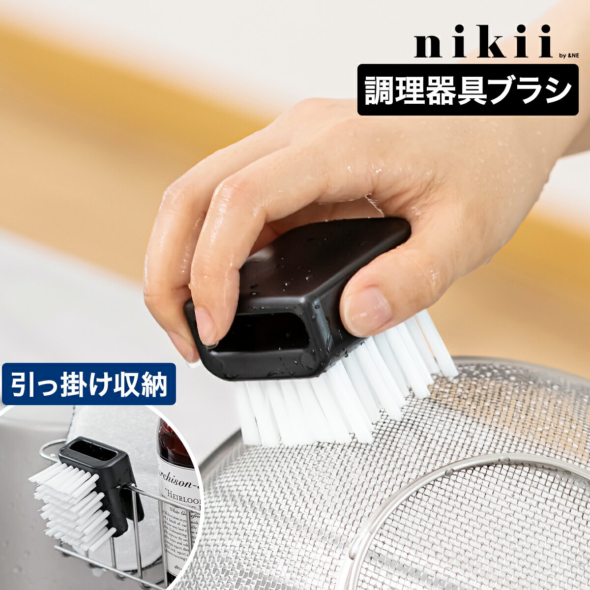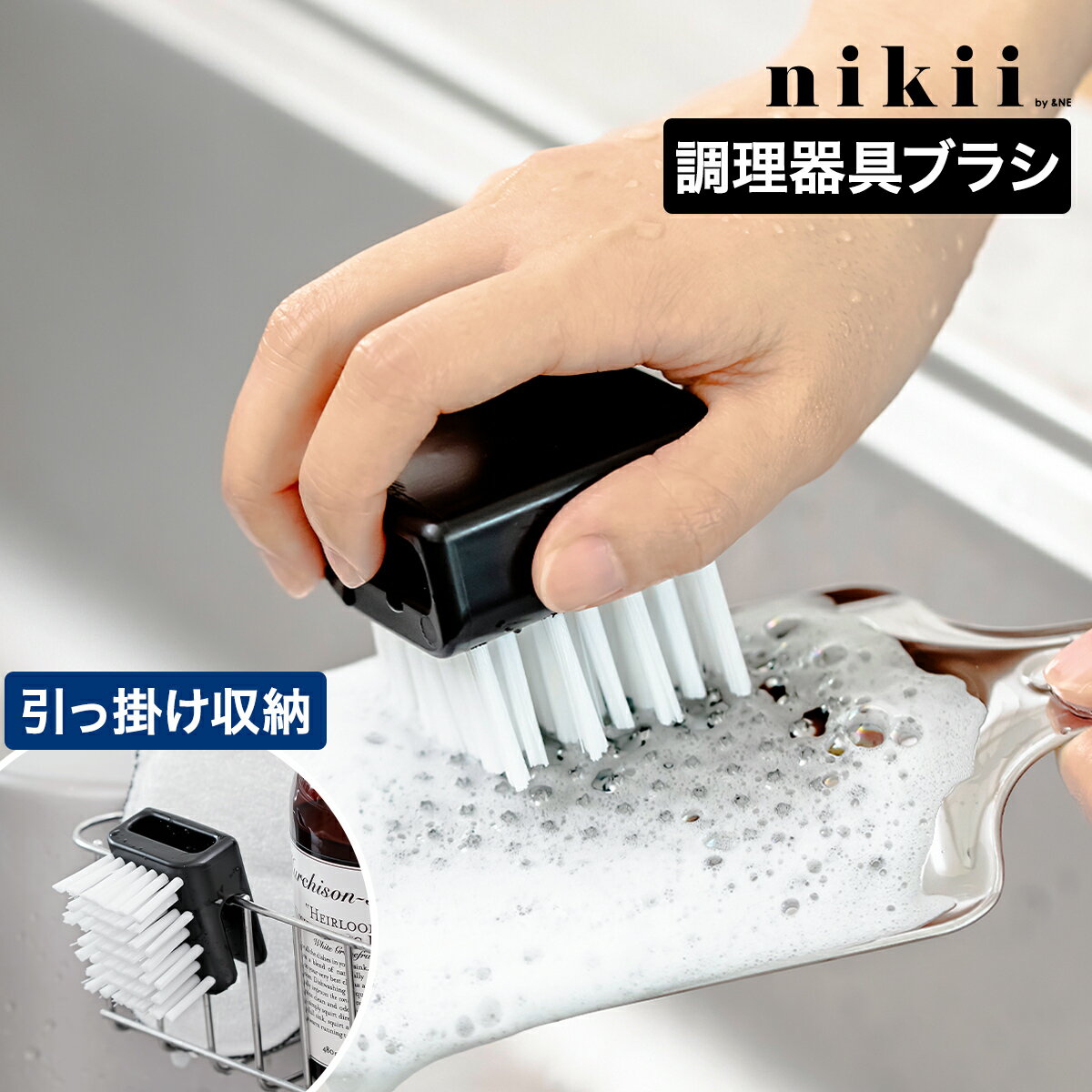 キッチンブラシ たわし 台所ブラシ キッチン 掃除 ナイロン ミニ 排水口 野菜用ブラシ 泥落とし 鍋洗い 四角 角型 持ちやすい 引っ掛け収納 自立 新生活 ブラック 黒 モノトーン シンプル モダン &NE アンドエヌイー ニキ NMM-313[ nikii 調理器具ブラシ スクエア ]