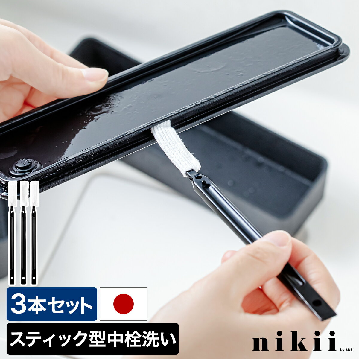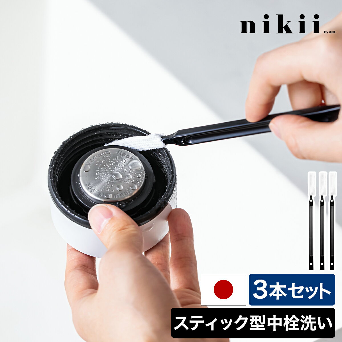 ミニブラシ 中栓洗い 3本セット パッキン キッチンブラシ 掃除用スティック 掃除ブラシ クリーナー 隙間洗い ボトル中栓 水筒 ヘラ付き キッチン掃除 溝 新生活 ブラック 黒 モノトーン モダン シンプル &NE アンドエヌイー ニキ 日本製 NMM-315[ nikii 中栓洗い ]