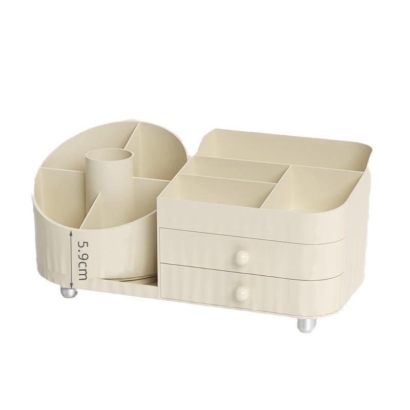 コスメ収納 卓上ドレッサー 引き出し式 化粧品収納ボックス 大容量 スキンケア 口紅 メイクブラシ 小物入れ クリームホワイト