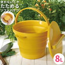 折りたたみ ソフトバケツ フタ付き 8L イエロー I-551 | シリコン コンパクト 持ち運び