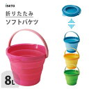折りたたみ ソフトバケツ 8型 伊勢藤 I-484 / 日本製 8L バケツ やわらかい 折り畳み 掃除 清掃 洗濯 防災 アウトドア コンパクト 収納 ピンク ブルー グリーン イエロー 便利 /