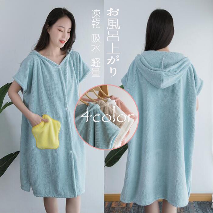 送料無料 フード付き バスローブ レディース タオル地 速乾 ワンピース 前開き 半袖 バスローブ ワンピース タオル地 タオル ポンチョ型 全5色 マタニティ