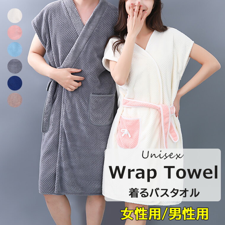 プールやお風呂上がりにさっと着れるユニセックス用着るバスタオルのご紹介です♪ 半袖 バスローブ バスタオル 大人用 レディース メンズ ペアルック 配色 ポケット付き■ 商品説明プールやお風呂上がりに大活躍してくれる着れるラップタオルです。 体を隠せるので、お着替えタオルとしてもおススメ。 着心地と吸収性にこだわったバスローブ♪ 水遊びで濡れたからだをしっかりと包んでくれます。 デリケートな肌にも優しいので安心して使えます♪ 海やプールでは、日よけタオルとしてもお使いいただけます。■ カラーホワイト(女性用) / ピンク(女性用) / ライトブルー(女性用) グレー(男性用) / ブルー(男性用) / カーキ(男性用) ※モニターの発色の具合によって実際のものと色が異なる場合がございます。ご了承ください。■ サイズワンサイズ ※サイズ詳細は商品画像のサイズチャートをご参照ください。 ※測り方によって、多少の誤差が生じる場合がございます。■ 素材ポリエステル■ 検索キーワードお風呂上りにすぽっと着るだけ ♪半袖 バスローブ バスタオル 大人用 レディース メンズ ペアルック 配色 ポケット付き 大判 吸水 吸水タオル ワンピース 風呂上がり ルームウェア お風呂上り ルーム 旅行 スイミング 海水浴 温泉 スイミング ホワイト ピンク ライトブルー グレー ブルー カーキ ワンサイズ ポリエステル バスローブ バスラップ 吸水性バツグン お風呂上り シャワー後バスタオル 大判 ラップタオル 着れるバスタオル バスローブ ボデイタオル タオル お風呂 温泉 ジム 落ちない