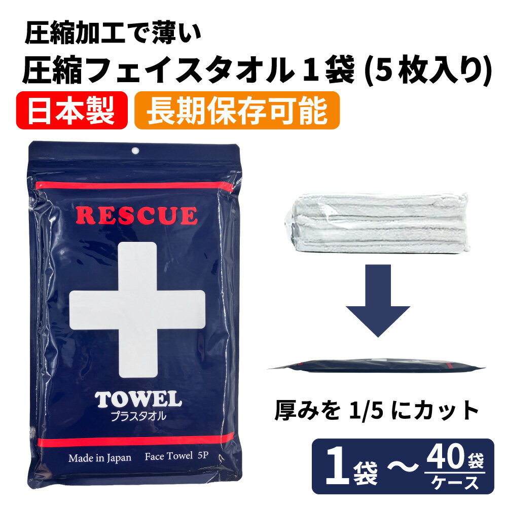 圧縮フェイスタオル 1袋 (5枚) 避難生活用品 フェイスタオル 防災用タオル 日本製 防災用品 水不要 圧縮タオル コンパクト タオル 省スペース 避難用グッズ 国産 防災 真空圧縮パック 備蓄 まとめ買い プラスタオル (メール便1個まで