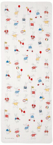 山本仁商店(YamamotoJin) ふんわりてぬぐい 十人兎色手拭 パレード 二重ガーゼ手拭い 綿100% 白 サイズ:約32×89cm
