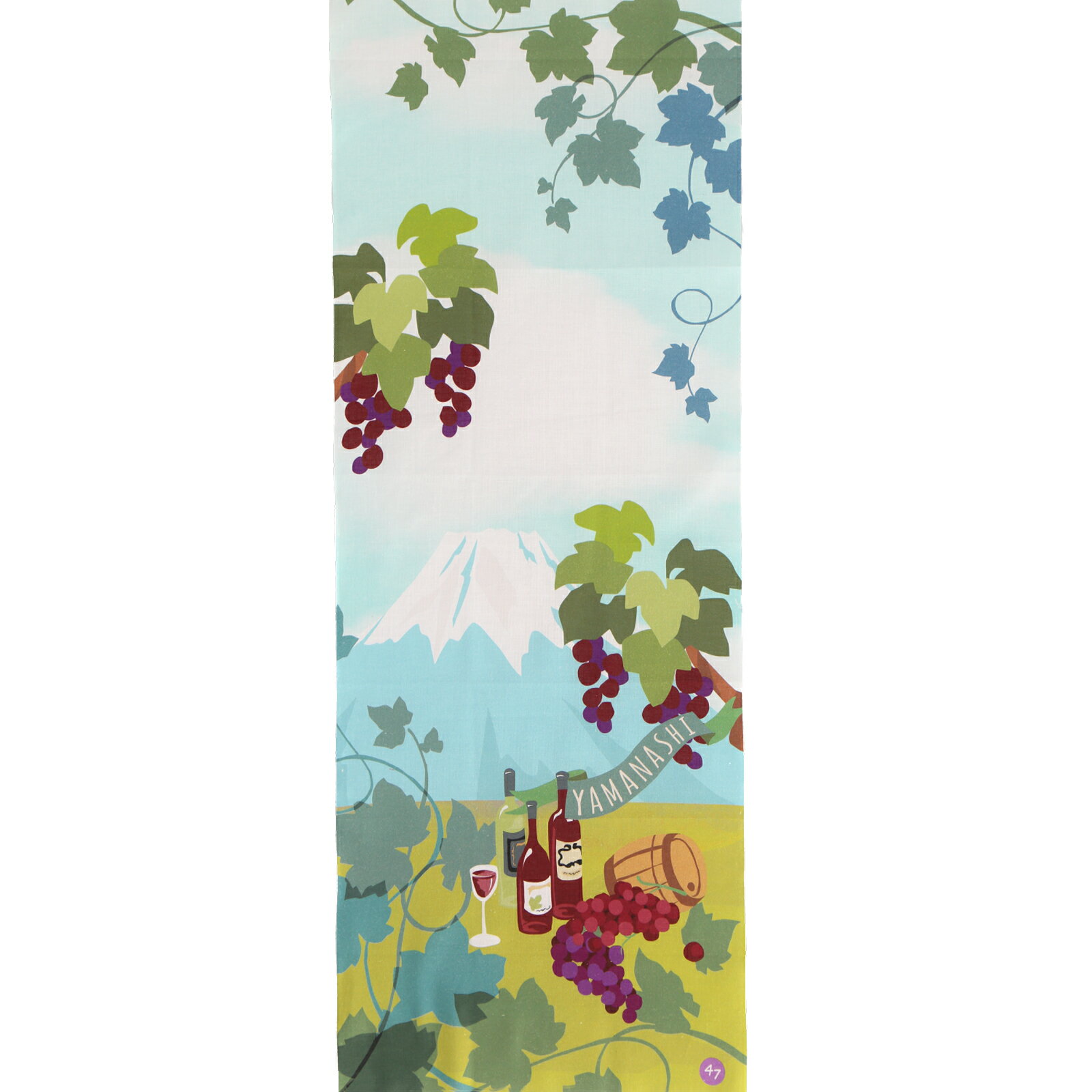 日本ならではの手ぬぐいに現代技法を用いて色鮮やかな多色使いが可能に。47都道府県それぞれの魅力を手ぬぐいに表現しました。 《47Japan Rediscovery》 日本には「いいとこ」がたくさんある。 47都道府県の数だけ、[ 地域ごとにそれぞれの特色があり、 誇るべき伝統や文化、特産物や資源がたくさんある。 当たり前に思っていた日本の魅力に今いちど見て、触れて欲しい。 日本の宝をいつまでも、世の中の時流に合わせて、 大切に未来へと繋ぐ。 ニッポンを再発見してみよう!《山梨》山梨県と言えば日本一の出荷量を誇るブドウと、それによって作られる美味しいワインよね。そのワインを美味しくするのは『お水』なの。ミネラルウォーターの生産量も日本一。“天然の水がめ”と呼ばれるほど豊富な水量を誇っているのよ。あ?、ワインが飲みたくなってきちゃったわ♪ 【スペック】■サイズ:約 横34cm×縦90cm ■素材:綿100% ■お手入れ:手洗い■原産国:日本【取り扱い上の注意】 この商品の特性上、色落ちや色あせすることがあります。また、濡れたまま放置したり、重ね合わせてたりしますと色が移る場合がありますのでご注意ください。・洗濯の際は、単独で手洗いしてください。・塩素漂白剤は使用しないでください。・素材の特性上、変形します。※写真の色味はご覧になる環境(PCのモニタやスマホの画面)によって、実物と若干異なる場合がございます。ご了承ください。