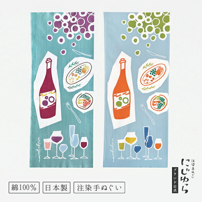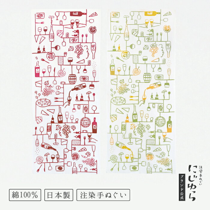 【にじゆら公式】wine-tsunagi 赤 白 てぬぐい ワインつなぎ つつむ ラッピング 飾る インテリア 贈る ギフト プレゼント 母の日 父の日 ワイン ぶどう ブドウ チーズ オリーブ クラッカー ワインボトル ワイングラス アルコール 酒 手拭い 伝統工芸品