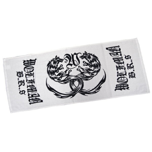 WOLFMAN B.R.S SPEC 商品名 ケルティックウルフフェイスタオル 商品説明 向かい合う狼の尾が絡みあい、博愛や友情を感じさせるデザインになっています。使い勝手が良いので、普段使いのローテーションにやコレクションしてみても! 素材 綿100% サイズ W34cm×H88cm