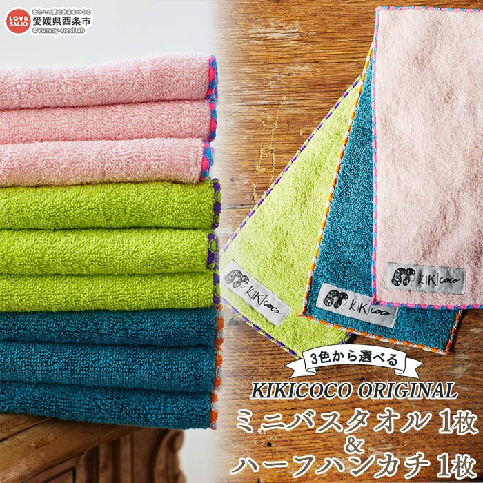 【ふるさと納税】KIKICOCO ORIGINAL 3色から選べる ミニバスタオル1枚とハーフハンカチ1枚のセット ※翌月末迄に順次出荷します。 洗顔 洗面 お風呂 ハンドタオル コットン 綿100% 大磯タオル 愛媛県 西条市 【常温】