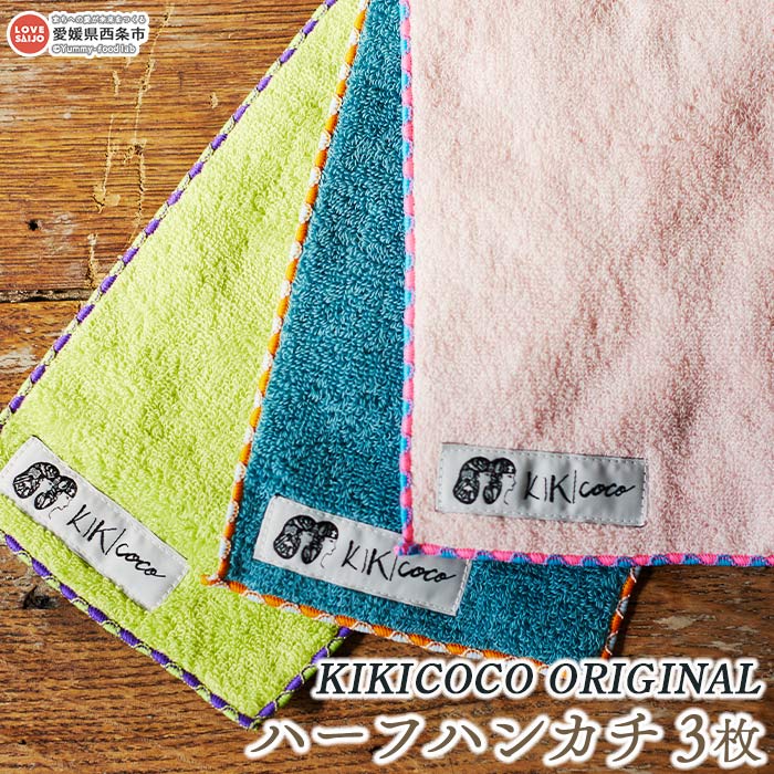 【ふるさと納税】<KIKICOCO ORIGINAL ハーフハンカチ3枚> ※翌月末迄に順次出荷します。 洗顔 洗面 ハンドタオル コットン 綿100% 大磯タオル 愛媛県 西条市 【常温】
