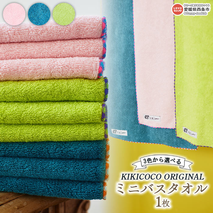 【ふるさと納税】KIKICOCO ORIGINAL 3色から選べる ミニバスタオル 1枚 ※翌月末迄に順次出荷します。 お風呂 スリム 綿100% 吸水性 なめらか ふんわり 大磯タオル 愛媛県 西条市 【常温】