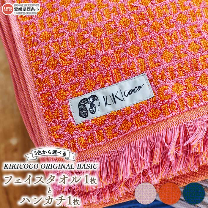 【ふるさと納税】KIKICOCO ORIGINAL BASIC 3色から選べる フェイスタオル1枚とハンカチ1枚セット ※翌月末迄に順次出荷します。 洗顔 洗面 お風呂 普段使い 綿100% オーガニックコットン フリンジ 小物 大磯タオル 愛媛県 西条市 【常温】