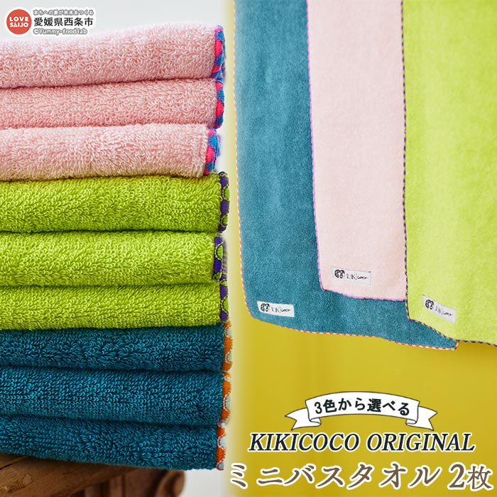 【ふるさと納税】KIKICOCO ORIGINAL 3色から選べる ミニバスタオル2枚 ※翌月末迄に順次出荷します。 洗顔 洗面 お風呂 コットン 綿100% 吸水性 ふんわり なめらか 小さめ コンパクト スリム 日本製 大磯タオル 愛媛県 西条市 【常温】