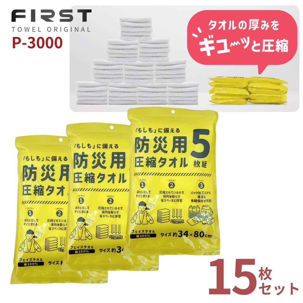 FirstOriginal 水いらず 防災用 圧縮タオル 5枚×3パック[中厚手] | タオル 防災 備蓄 防災用品 水いらず 圧縮 フェイスタオル 白 ホワイト タオル フェイス 大容量 ハンカチ 速乾 アウトレット キッチン ハンド ボディ 収納