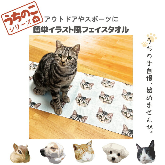 30%割引クーポン★ブラックフライデー★ うちのこシリーズ イラスト 写真 犬 猫 オリジナル タオル フェイスタオル オシャレ かわいい オーダーメイド プレゼント 名入れ 父の日 母の日 記念日 コンパクト 軽い シンプル 買い物 人気 ギフト ペ