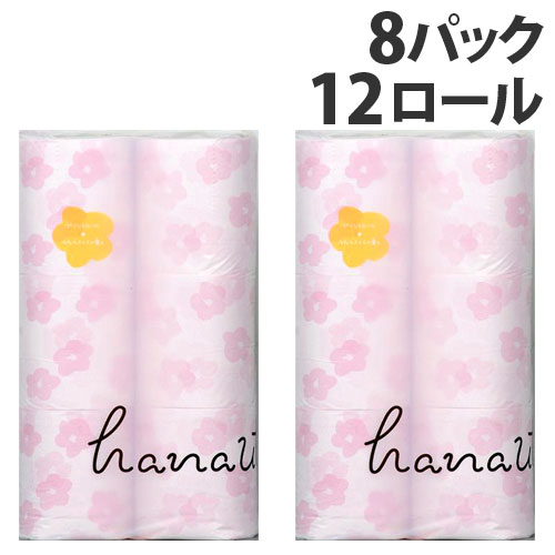 HANAUTA ハナウタ トイレットペーパー ダブル 12ロール 12Rダブル 25m × 8袋 はなうた 96個 香り付きトイレットペーパー トイレット ペーパー 可愛い かわいい 香り 香り付き 柄 花柄 プリント トイペ トイレットペーパーダブル トイレロール ピンク やわらか まとめ買い