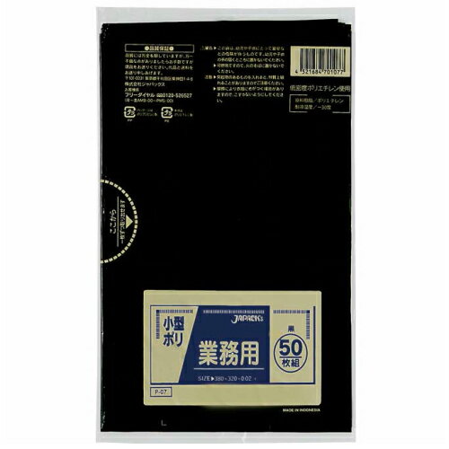 ゴミ袋 業務用 小型ポリ袋 黒 (50枚入) 厚さ 0.02mm P-07 ジャパックス