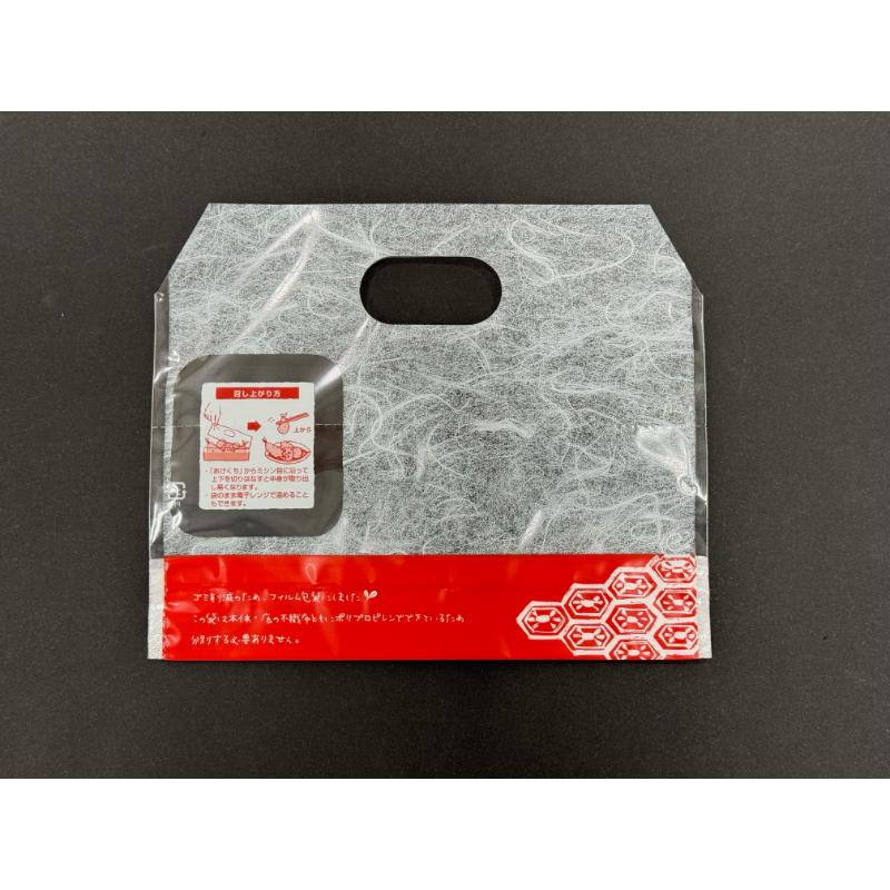 ■天ぷら、コロッケ、から揚げ等の惣菜の包装に適しています。■中身を取り出す時に、袋の側部からミシン目にそって上下を切り離せる様になっています。■中身が取り出しやすく、そのまま食卓に並べれば器がいりません。■袋のミシン目部分を切り離すことで背が低くなるため電子レンジにかけ易くて簡単に温めなおすことができます。■材質:ポリプロピレンフィルム、不織布