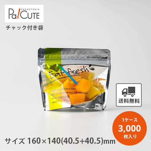 【KB Zip de エアスルー1614銀】【枚単価 15.9円×3000枚】ジッパー 袋 スタンドパック チャック 袋 カットフルーツ サラダ おしゃれ お持ち帰り テイクアウト 入れ物 使い捨て チャック付き 保存袋 バッグ 保存 業務用 ナッツ