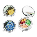 ピルケース サプリメントケース ステンレス製 小さな鏡付き 携帯用 丸型 小型 おしゃれ 可愛い 防湿 軽量 コンパクト 小分け 密閉 持ち運び 薬ケース 小物入れ 星月夜 太陽と月 (2個入り) 送料無料