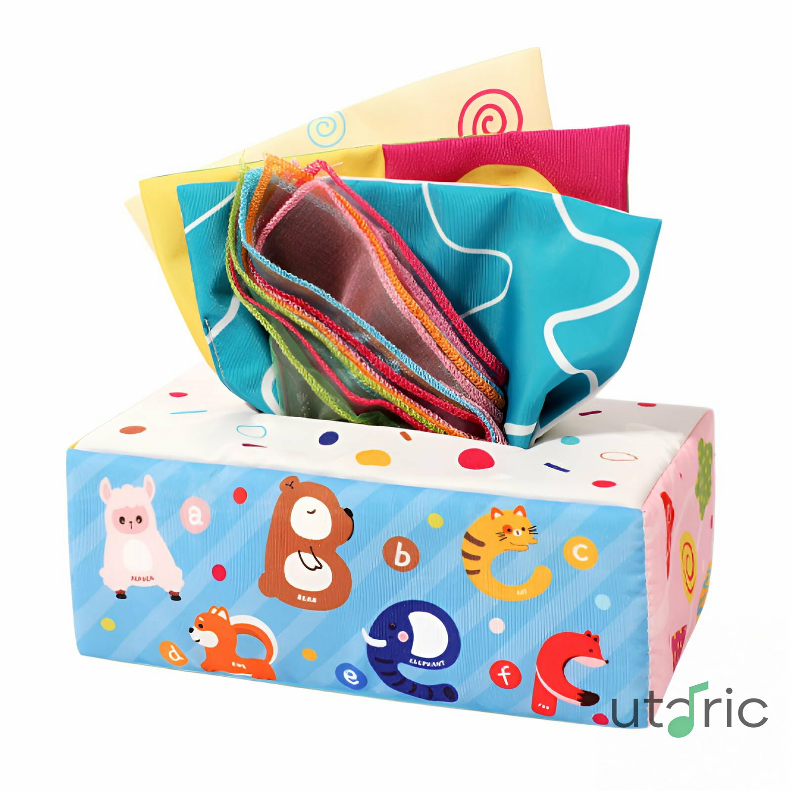ベビーティッシュボックスおもちゃ|布製知育玩具 モンテソッリー 柔らかいファブリック 指先遊び つかむ・ひっぱる・つまむ 1 歳 2 歳 3 歳向け 誕生日プレゼント 6-12 ヶ月 新生児ギフト カラフルなぬいぐるみデザイン