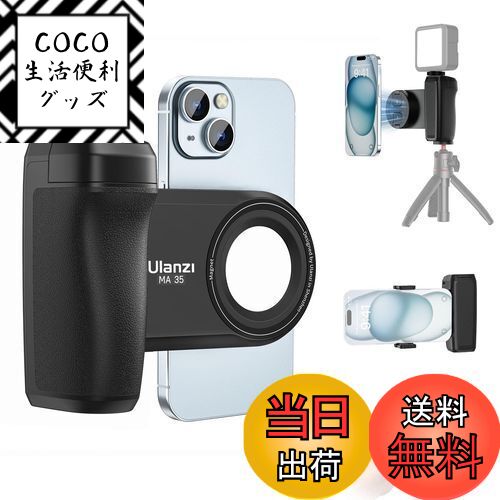 商品情報商品の説明主な仕様 【Magsafe用 スマホグリップ】磁気吸着式の設計ですので、置くだけで片手でわずか1秒で着脱可能で取り付けや取り外しが簡単に出来ます。クリップ式スマホホルダーよりも便利です。MagSafe磁気デザインを採用して、iPhone 16/15/14/13/12シリーズ以降のバージョンとMagSafeケースに対応できます。MagSafe非対応ケースとスマホを使用する場合、内側のスマホクリップを使ってスマホを固定することができます。また、ケースの外側に金属製のリングを貼り付けることも可能であります。(※金属リングは付属していす。)br【強力な磁力&片手簡単操作】Ulanzi MA35 スマホホルダーは最強磁力のN54ネオジウム磁石10枚を内蔵し2.3kgまでの吸着力を実現しました。外側には滑りにくいシリコンハンドルを採用し、人間工学に基づいて設計されており、安定した快適なグリップを提供します。br【充電可能なBluetoothリモコン】Bluetoothリモコンはスマホに接続可能でiPhoneやAndroidスマホに適用します。シャッターを押すだけで最遠15mまで操作可能、Bluetoothリモコンで操作するのは撮影時の手振れを避けるだけでなく、他人からの協力なしで撮影を実現可能なので、とても便利です。(ご注意:Bluetoothに接続できない場合は、ご連絡お願い致します。)br【1/4ネジ&コールドシュー】シャッターハンドルは1/4スクリュー標準インターフェースと互換性があり、1/4スクリューコネクタを持つすべての一脚 三脚 自撮り棒を撮影装置に接続できます。コールドシューマウント付きで、マイクやLEDライトを取り付けることができ、ビデオ撮影のための最高のパートナーです。br【いろんな機種に対応&化粧鏡付き】約3.5−6.7インチのスマホに対応のサイズ範囲:幅50〜95mm、厚さ12mm、99%のスマホに適応可能です。化粧鏡が付属しており、自撮りやVlog撮影、生放送の際に服装や身だしなみをチェックでき、旅行に便利なガジェット!(お手元に届きましたら、ミラーからフィルムを剥がしてください。)br【メーカー保証】セット内容:スマートフォンホルダー *1、Bluetoothリモコン *1、金属リング*1、日本語取扱書付き *1。弊社の商品は12ヶ月品質保証があります、初期不良や使用中の自然故障等の場合交換のサービスを提供致いたします。