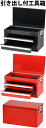 2段トレーレトロスチールツールボックスベアリング機構で引き出しが便利道具箱 救急箱 マット付きトレーガレージボックス 工具箱 収納ボックスレッド ブラック2TRAY TOOL BOXトレーロック機構付き小物入れ持ち運び用取って付き