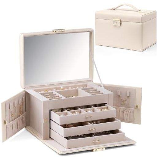 Vlandoジュエリーボックスアクセサリーケースジュエリー収納大容量メイクボックスピアスリングネックレスイヤリング小物入れボックス鏡付き仕切り引き出しジュエリーバッグレディース…