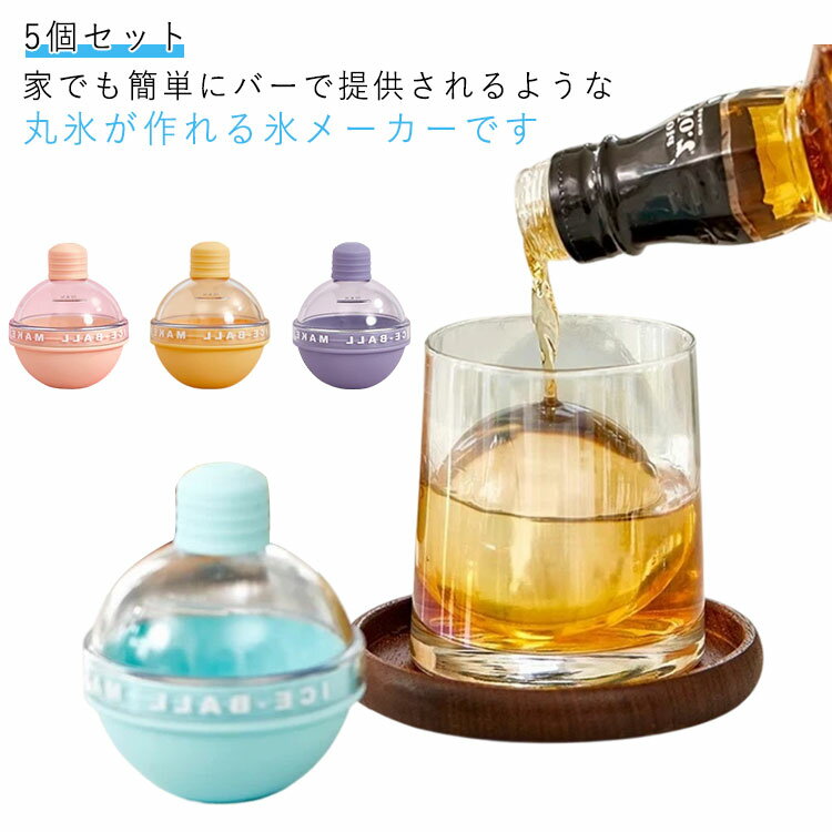 製氷ケース 5個セット 丸氷 アイスボール ボール型 製氷皿 家飲み アイスメーカー 大きい 丸い氷 梅酒 宅飲み ウィスキー 酒 晩酌 アイスボールメーカー ハイボール 氷 ジュース 便利グッズ ブルー イエロー ピンク