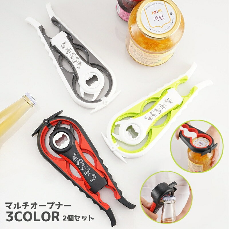送料無料 マルチオープナー 2個セット 栓抜き キャップ開け ふた開け プルタブ 多機能 便利グッズ 缶開け 瓶開け 缶詰 開栓 キッチン雑貨