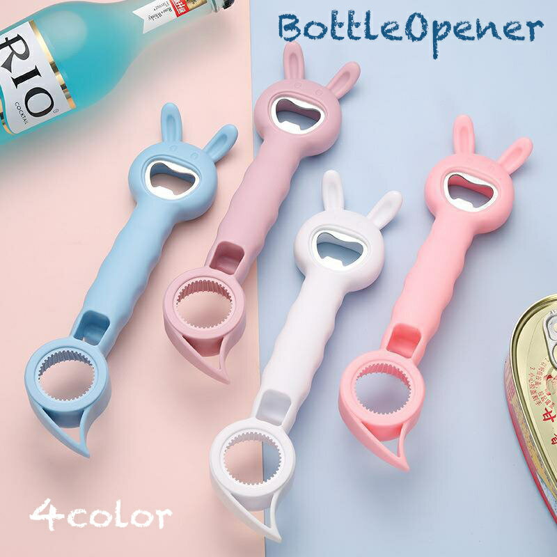 送料無料 栓抜き ボトルオープナー キャップオープナー 蓋開け ふた開け 多機能 キッチン用品 雑貨 うさぎ ウサギ かわいい カラフル