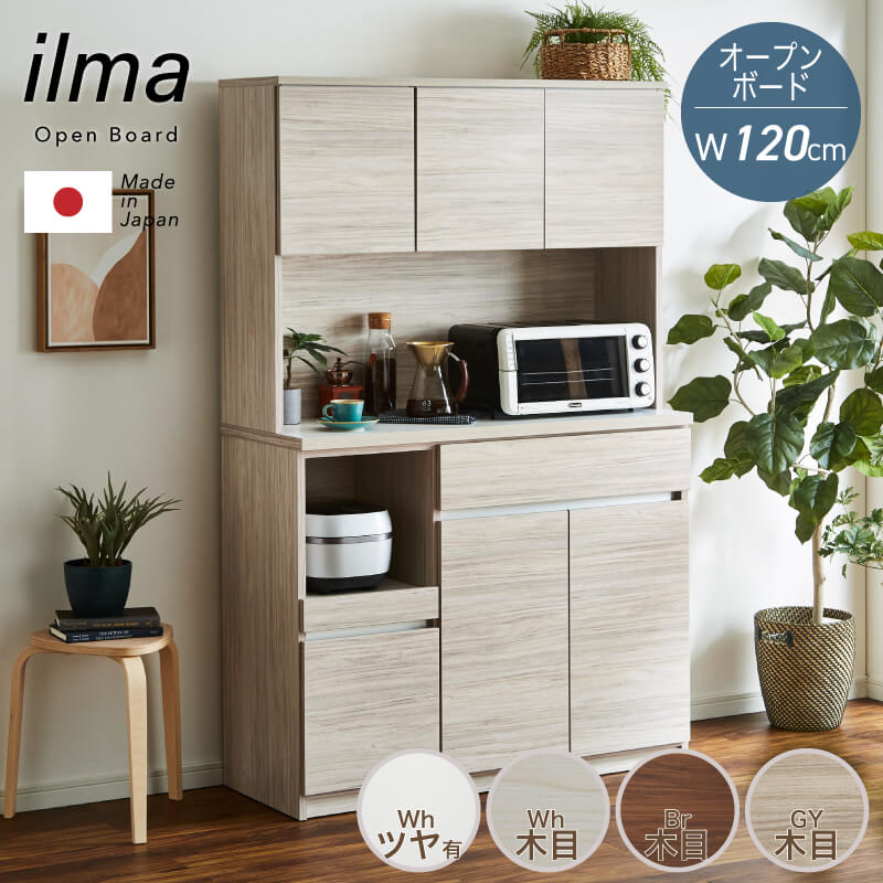 5%OFFクーポン対象●11月20日0:00〜【大川家具】オープンボード キッチン収納 レンジボード 120cm 幅 120 イルマ モイスなし ホワイト/ブラウン/グレー [土井インテリヤ工業]