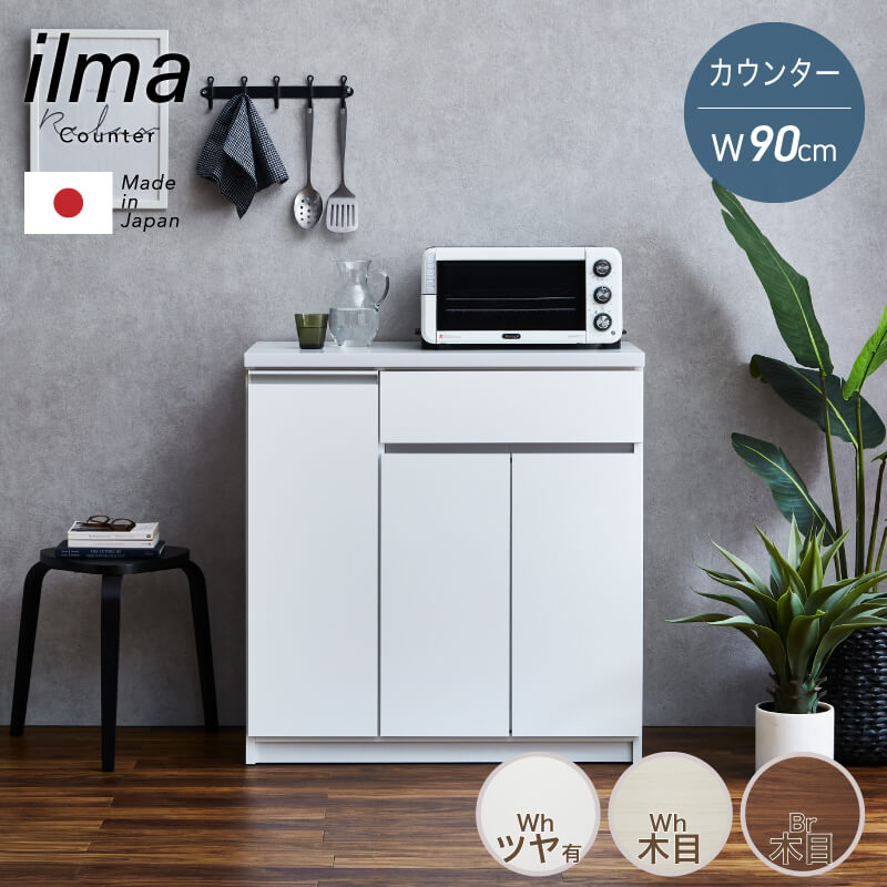 5%OFFクーポン対象●11月20日0:00〜【大川家具】カウンターボード キッチンカウンター キッチン収納 カウンタ— 90cm 幅 90 イルマ モイスなし ホワイト/ブラウン [土井インテリヤ工業]