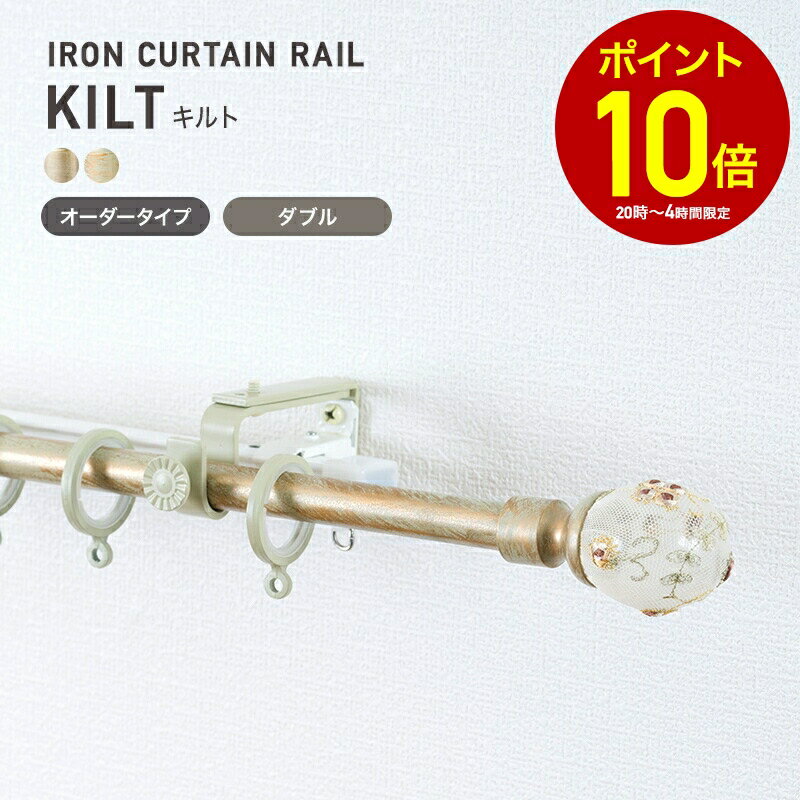 [全品10%OFF×5日限定クーポン+P10倍 5日20時〜4H]カーテンレール アイアンレール アイアンカーテンレール ポール 装飾レール diy おしゃれ アンティーククラシックシリーズ キルト f1 サイズオーダー ポールダブル 2連 〜1m C-F-3