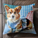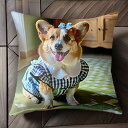 ギンガムチェック コーギー ワンピース ベッド クッションカバー 45×45cm アニマル柄 おしゃれ 可愛い クッション本体付き 正方形 犬ファン