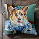 ベッド コーギー 枕 チェック柄 ワンピース クッションカバー 45×45cm アニマル柄 おしゃれ 可愛い クッション本体付き 正方形 犬ファン
