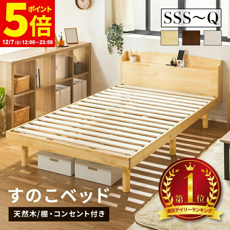 【ポイント5倍★12/7 12:00〜23:59】 すのこベッド ベッド シングル セミダブル ダブル クイーン セミシングル セミシングルショート パイン材 宮付き コンセント付 高さ調節 シンプル ベッドフレーム 天然木 おしゃれ ナチュラル ウォルナット ホワイト