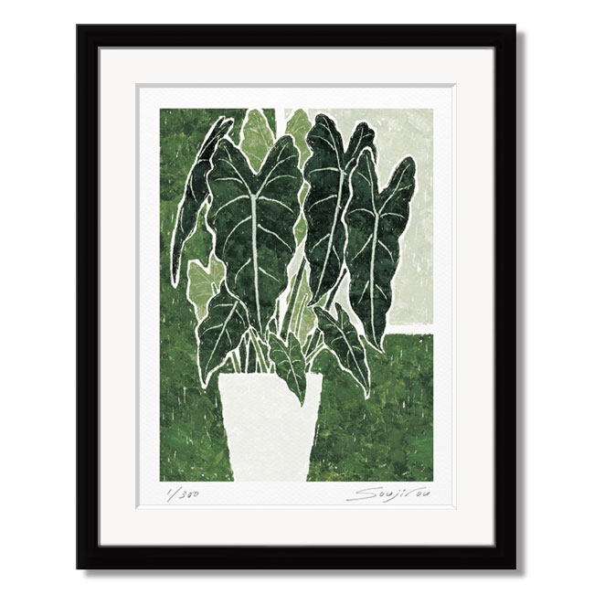 Soujirou Artについて 「自然をテーマにシンプルでピュアな作風」画業30年以上にわたり、多様なフィールドで数多くの作品を手掛けてきた「藤谷壮仁郎(Soujirou)」が、自らの技術と想いを結集し、デジタル環境においてオリジナル作品を制作しました。このジークレー(版画)は、直筆のサインとエディションナンバーが入ったアート作品です。 CPシリーズでは、モンステラ、アイビー、ポトス、サボテン、サンセベリアなど観葉植物を題材に、北欧風のシンプルなデザインと、自然色に近い緑の穏やかなグラデーションカラー、そして葉の形が織りなす自然のリズム感が特徴的なアートです。額入りのため、玄関やリビングなど、お部屋のどこにでも簡単に飾ることができ、季節や流行に左右されることなく長く飾れるお部屋のインテリアアイテムとして活躍してくれそうです。新築祝いや開業祝い、母の日ギフトなどの記念日のプレゼントとしても多くの方々にご好評いただいております。(表示価格は取付用金具と配送料すべて込みの値段です) 略歴 1966年 兵庫県に生まれる。 1989年 大阪デザイナー専門学校PD科を卒業。 1990年 (株)クラークケントに入社。 1995年 フリーとなり、S&R ILLUSTRATIONを設立。 1996年 大阪デザイナー専門学校PD科非常勤講師に就任。 2005年 屋号をS and R(illustrations)に改める。 2007年 日本グラフィックデザイナー協会(JAGDA)会員。 2008年 玄光社『illustration FIEL』デジタル版に掲載。 2011年 オリジナル作品のジークレー(版画)販売を開始。 2012年 初個展 平和紙業ペーパーボイス大阪で開催。 2013年 第2回個展 心斎橋ダブル・エー・ギャラリーで開催。 2016年 50歳を機に画家宣言。肩書き「画家/イラストレーター」 Concept(作家の想い) 少年のころ山、川、田、畑で日が暮れるほどよく遊びました。体いっぱいに感じた自然の恩恵、その大切な時間、存在こそが絵を描き続ける原動力です。春から夏へと新芽が伸びる様子は、力強い生命力と共に感動を与えてくれます。私は、その生命力に満ちた瞬間を愛おしく思い、喜びと共に作品に描き留めています。共に生きる地球の大切な生命をテーマに、人々の心に緑の温もりを届け、環境への配慮を想起させるビジュアルを目指して、作品を創作しています。 ジークレー(版画)について ジークレー版画は、デジタル・リトグラフとも言われる最新のデジタル技術を使用した版画技法です。ジークレー(ジクレー)はフランス語で「吹き付けて色を付ける」という意味で、再現性が非常に高く、顔料インクを使用することで耐光性にも優れており、現在最も原画に近い版画技法とされています。 お気に入り登録がおすすめです!リビングや玄関、お部屋の壁におすすめ!観葉植物デザイン 壁掛けアート。壁掛け用フックを同梱プレゼント 1年中、時期や季節を気にせず飾れる ミドルサイズの額入りアートです。