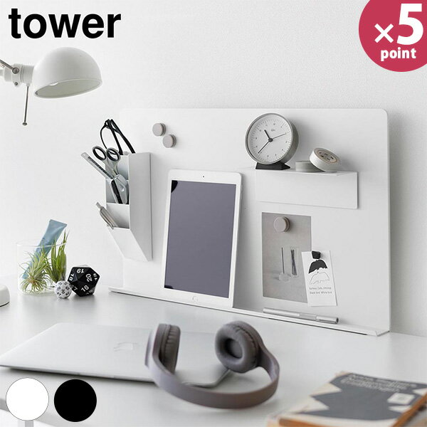 デスク横トレー付きスチールパネル タワー [山崎実業] tower ホワイト ブラック 10066 10067 マグネットボード パーテーション 子供部屋 オフィス 机 デスク 学校 プリント 掲示板 小物 整理 磁石 収納 おしゃれ 白 黒 公式【フラリア】【ポイント5倍】
