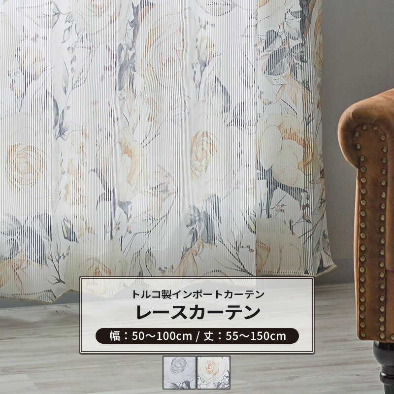 オススメポイント ★デザインの特徴 -------------------------------------------------- ポリエスエル100%透明感のある繊細なストライプ織りの生地に大人っぽい薔薇プリントのシアーレース生地。 落ち着いたアンティーク感のある色合いでフロントレースにおすすめです。 ★カーテンの役割 -------------------------------------------------- カーテンは光やUV(紫外線)をカットするだけではなく、空気層が窓の外からの熱伝導を防ぐため、夏は涼しく冬は暖かい遮熱・断熱・保温効果を発揮します。 また、冷房・暖房効果がアップし省エネで経済的、目隠しとしてプライバシーも守れる暮らしに必要なアイテムです。 また、こちらのカーテンは高級カーテンに使われる生地の横取り仕様。 一般的なカーテンは生地を縦取りで使い、幅100cm以上の大きなサイズのカーテンには幅継ぎが入りますが、こちらのカーテンは幅継ぎが入らず美しい仕上がりです。 ★裾ウェイト仕上げでおしゃれに -------------------------------------------------- レースの軽さと透明感がより美しく際立ちすっきりと窓辺を彩ります。ワンランク上のオシャレ仕上げです。 ★当社専門バイヤーが選定 -------------------------------------------------- 当社の扱うカーテンは、洋室はもちろん、日本らしい畳のある和室にも合わせやすい生地を選定しています。また、”ナチュラルテイスト”に合うベージュ、ブラウン、アイボリーのカラーや、”北欧テイスト”に合うグリーン、ホワイト、イエロー、”子供部屋”に合うピンク、ブルー、”ラグジュアリーテイスト”のゴールドやパープルなど、幅広いインテリアに合うように専門バイヤーが選定しています。 こちらのカーテンは、海外から取り寄せたファブリックで、日本ではなかなか出会うことのない海外ならではの色使いや配色、品ある素材をお楽しみいただけます。是非海外インテリアでおしゃれな空間作りにお役立てください。 ★安心丁寧な日本製 -------------------------------------------------- 縫製のプロ職人が丁寧に国内縫製しています。 オーダーを受けてから福井県で一枚一枚丁寧に縫製しています。 既製5サイズ(幅100cmで丈をお選びいただけます)とサイズオーダーをご注文いただけます。サイズオーダーでは幅150cmなどの大きい窓にも対応できるよう幅200cmまでご注文をしていただけます。 商品詳細 ■材質 ポリエステル100% ■機能 ウォッシャブル ■付属品 ・アジャスターフック(A,B選択可) ■フックの数と継ぎ目 詳しくはこちら ご注意ください ■オーダー商品のためご注文確定後の返品・交換はできませんので予め、確認の上ご購入ください。 ■パソコンの環境により、モニター画面上の色と実際の商品の色の見え方が異なる場合がございます。 ■ご注文後の返品・交換・キャンセルのできない商品です。開封した商品の返品・交換は一切お受けできません。 ■出荷完了後の変更については、交換対応となり、料金が必要となりますので、事前にご確認をいただいた上でのご注文をお願いいたします。 ■ご注文の前に当店のご注文規定を必ずご確認ください。ご注文の際は、こちらのページの内容をご理解いただいたものと判断させていただきます。-カルラ/YH993- 【アンティーク ストライプ柄】 透明感のある繊細なストライプ柄に大人っぽいバラプリントのシアーレースです。アンティークなイエローとグレーのカラーバリエーションです。 【リビングにおすすめ】 リビングや寝室、一人暮らしの女性のお部屋、子供部屋など、北欧テイスト風のデザインとカラーでお部屋を明るく楽しい空間と演出します。 Color variations Detail 上部は1.5倍ヒダ/2つ山仕上げでナチュラルなドレープが特徴で、カーテンの裾全体にウェイトテープで重さを出すシンプルな仕上げ。より透明感のある仕上がりで、一般的な裾の折り返し縫製より上品で高級感のある美しい仕上がりになります。 Spec - カーテン機能 - - トータルコーティネートが楽しめる - カーテンの生地とお揃いでカフェカーテンやローマンシェードを作ることができます。 部屋のトータルコーディネートが楽しめます。 オーダーフォームのタブを切り替えるとカフェカーテン、ローマンシェードのご注文が簡単にできます。 - コーディネートにおすすめ -