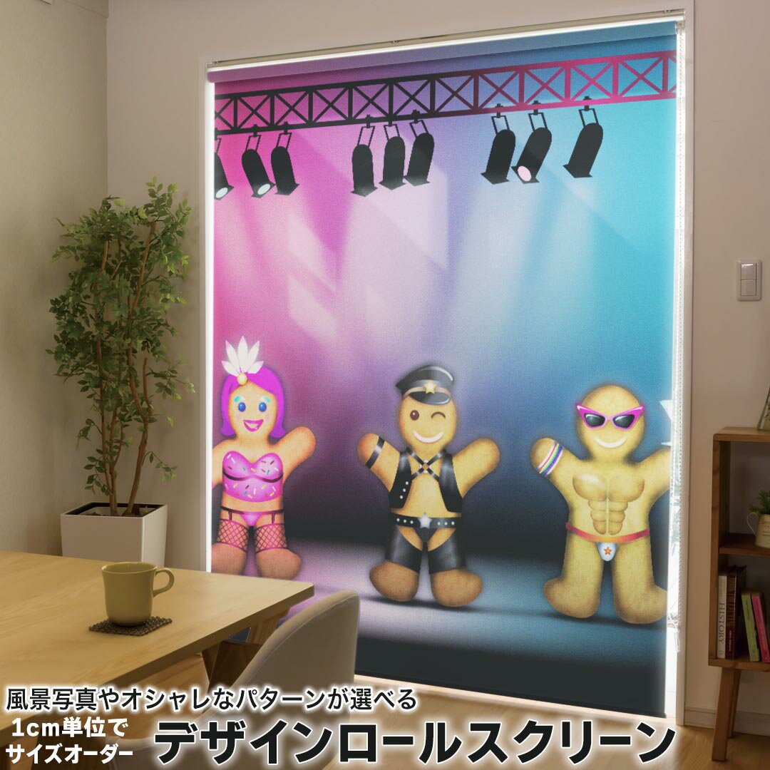 1cm単位サイズオーダー ロールスクリーン ロールカーテン オーダーメイド タチカワ 日本製 間仕切り カーテン 採光 非遮光 目隠し UVカット カーテンレール チェーン式 プル式 007358 その他 クッキーマン キャラクター ステージ