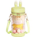 [YUYAKESHI] 痛バ 見せバッグ ショルダーバッグ イベント 15cmぬいぐるみ用 兎耳 2WAY 外出 透明 バッグ ミニポーチ 円筒 バック 蓋付(クリーム色・20cm高)