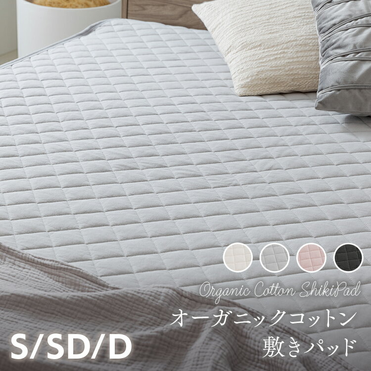 オーガニックコットン敷パッド シングル セミダブル ダブル敷ふとんカバー マットレスカバー 敷きパッド オーガニック オールシーズン 綿100% 洗濯機OK シングル 吸湿 天然素材 アイボリー ライトグレー チャコール スモーキーピンク[U]