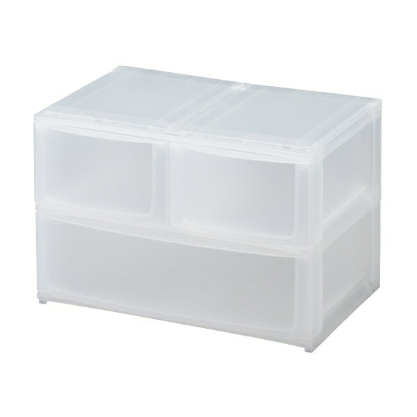 サンカ ナチュラ ポスデコワイド深ショート2深1段NpdW-B CL 【幅39×奥行き26.5×高さ26.5cm】 商品説明●ふんわり包み込んで、どの部屋にも溶け込むクリア ●カラーボックスでご使用できます。●文具や化粧品などの小物収納に。●各サイズ積み重ねてお使いいただけます。 ●前ズレを防止する脚ゴム付き●カラーボックスにぴったり収まります商品規格 ■商品サイズ(約) 幅39×奥行き26.5×高さ26.5cm、引出し内寸(約) 深型ショート 幅15.8×奥行き23.2×高さ10cm、深型 幅35.3×奥行き23.2×高さ10cm ■材質 本体 ポリプロピレン、滑り止め 合成ゴム■製造国 日本
