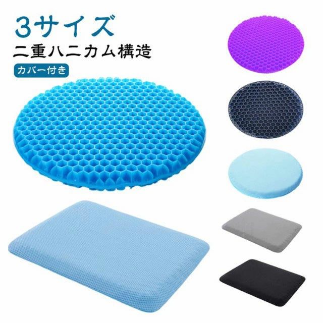 【二重ハニカム構造】【カバー付き】【3サイズ】人間工学に合わせて設計で、体圧を均一に吸収・分散し、圧力を軽減しながら体に最大のサポートと快適さを提供し、長時間座っても疲れにくいです。暑さを吸収・分散してサポートし正しい姿勢を保ちます。柔ら材質で椅子にも使えます、平らな椅子の表面に直接座るよりも座り心地がよい。高弾性ゲル材料の特徴で、いくらストレッチ、絞ってもすぐ元に戻します、経済的にも性能的にも普通のクッションより優れております。色移り・色落ちしないようにカバー仕様を変更しました。カバーは取り外し式なので、洗濯も可能です。カバーの裏面はメッシュ生地を使用しており、通気性マックス。 サイズ 本体+カバー サイズについての説明 サイズ:41*3.5cm/29*3cm/34*24*3.5cm 素材 TPE 色 丸ブルー41*3.5cm 丸ネイビー41*3.5cm 丸パープル41*3.5cm 丸グレー29*3cm 丸ブルー29*3cm グレー34*24*3.5cm ブルー34*24*3.5cm ブラック34*24*3.5cm 備考 ●サイズ詳細等の測り方はスタッフ間で統一、徹底はしておりますが、実寸は商品によって若干の誤差(1cm~3cm )がある場合がございますので、予めご了承ください。 ●製造ロットにより、細部形状の違いや、同色でも色味に多少の誤差が生じます。 ●パッケージは改良のため予告なく仕様を変更する場合があります。 ▼商品の色は、撮影時の光や、お客様のモニターの色具合などにより、実際の商品と異なる場合がございます。あらかじめ、ご了承ください。 ▼生地の特性上、やや匂いが強く感じられるものもございます。数日のご使用や陰干しなどで気になる匂いはほとんど感じられなくなります。 ▼同じ商品でも生産時期により形やサイズ、カラーに多少の誤差が生じる場合もございます。 ▼他店舗でも在庫を共有して販売をしている為、受注後欠品となる場合もございます。予め、ご了承お願い申し上げます。 ▼出荷前に全て検品を行っておりますが、万が一商品に不具合があった場合は、お問い合わせフォームまたはメールよりご連絡頂けます様お願い申し上げます。速やかに対応致しますのでご安心ください。