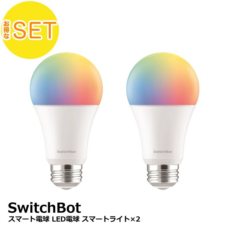 【おとくセット】SwitchBot スマート電球 (2個セット)スマートライト 音声操作 1600万色 調光調色 広配光 800lm 60W形相当 電球色・昼白色 RGBCWマルチカラー
